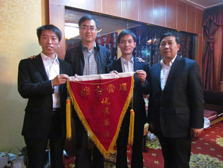 在此次會(huì)議上舉行了“三比三看”活動(dòng)首面流動(dòng)紅旗頒發(fā)儀式,檸條塔調(diào)運(yùn)部以“管理規(guī)范、團(tuán)隊(duì)和諧、服務(wù)優(yōu)質(zhì)、環(huán)境整潔”贏得了廣大司機(jī)、客戶及礦方的認(rèn)可和肯定,從而獲得了首面流動(dòng)紅旗。檸條塔調(diào)運(yùn)部主管王鵬(。┰跁(huì)上發(fā)表了獲獎(jiǎng)感言:在廣通神木分公司全力沖刺2012年各項(xiàng)目標(biāo)任務(wù)的關(guān)鍵時(shí)期,分公司授予檸條塔調(diào)運(yùn)部的這面綜合管理流動(dòng)紅旗,不僅激勵(lì)了檸條塔調(diào)運(yùn)部全體員工的工作熱情和工作積極性,更是鞭策了廣通神木分公司的全體員工。我們將以此為契機(jī),立足本職,學(xué)習(xí)借鑒兄弟部門的先進(jìn)經(jīng)驗(yàn),不斷改進(jìn)自己的工作方式、方法,力爭使檸條塔調(diào)運(yùn)部的各項(xiàng)工作能再上新臺(tái)階。